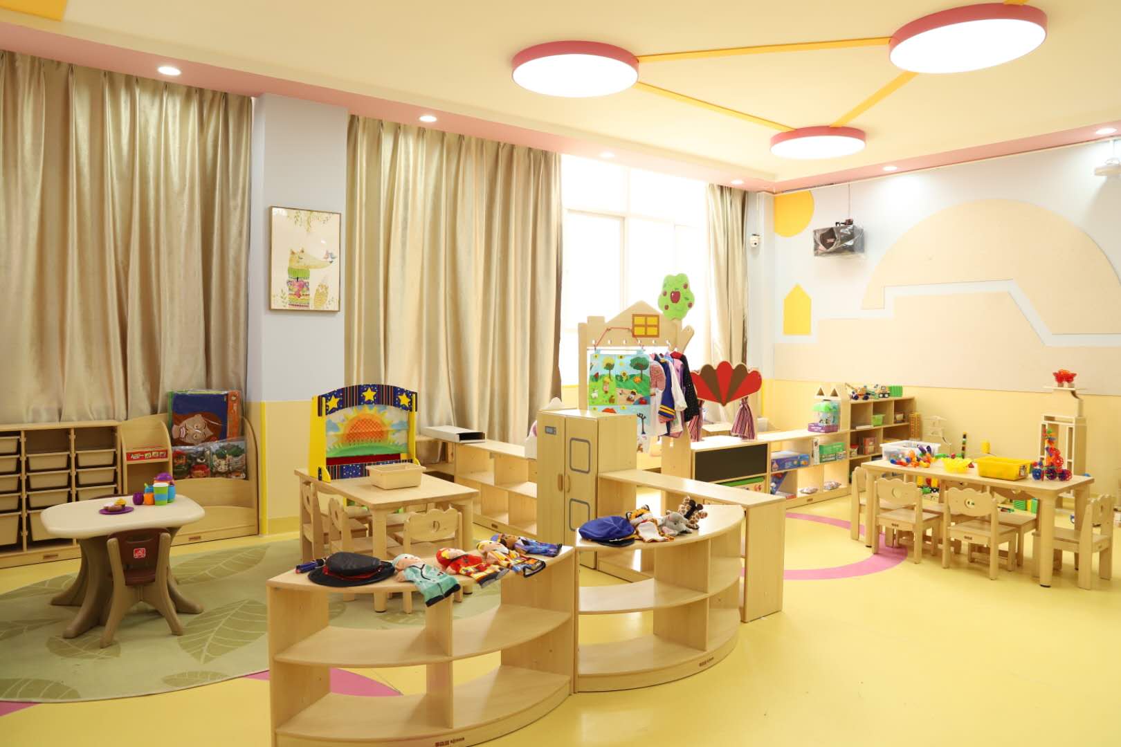 幼儿园教育活动模拟实验室,使用面积106平方米。主要配备有虚拟仿真幼儿园实训系统、电脑、平板、小中大班角色区、语言区、科学区、建构区、美工区等区域活动设备和教学材料、多媒体设备等教学设备。实验室主要开设课程:《幼儿园教育活动设计与指导》、《学前儿童社会教育》、《幼儿园班级管理》、《学前教育科学研究方法》。