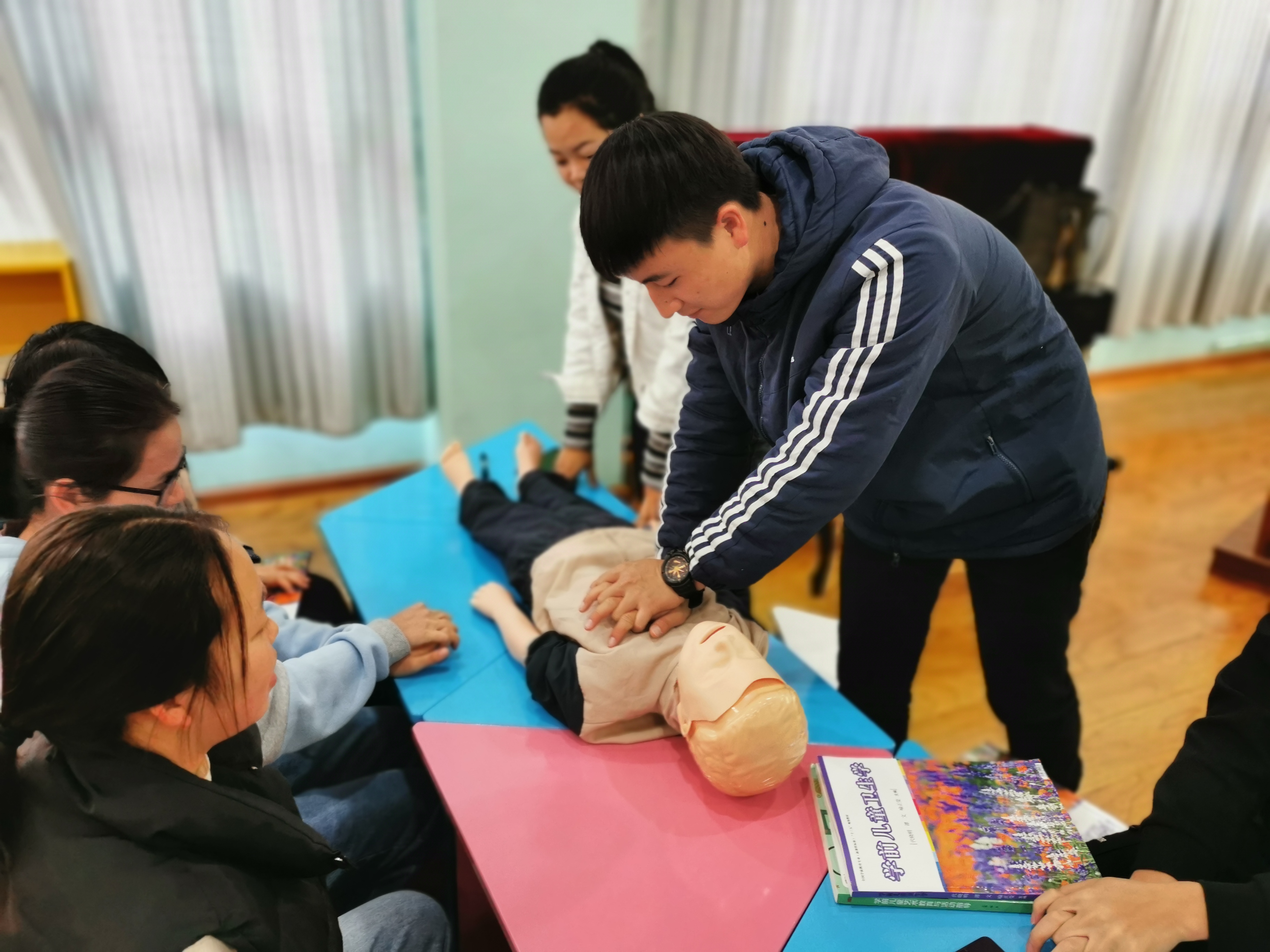 婴幼儿卫生保健实验室,使用面积106平方米。本活动室主要配备有人体解剖模型、高级儿童心肺复苏模拟人、胎儿妊娠发育过程模型、人体骨骼模型、婴儿梗塞模型、人体心脏解剖模型、幼儿健康管理平台等设备和教具。主要开设课程:《学前儿童卫生学》、《学前儿童卫生与保健》。