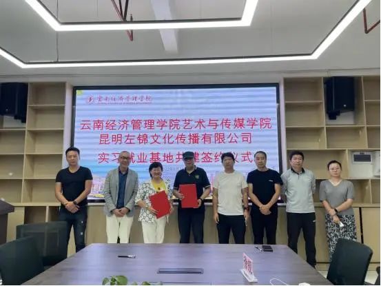 2022年8月31日,由云南经济管理学院艺术与传媒学院、昆明左锦文化传播有限公司共建实习就业基地的签约仪式在艺术与传媒学院举行。