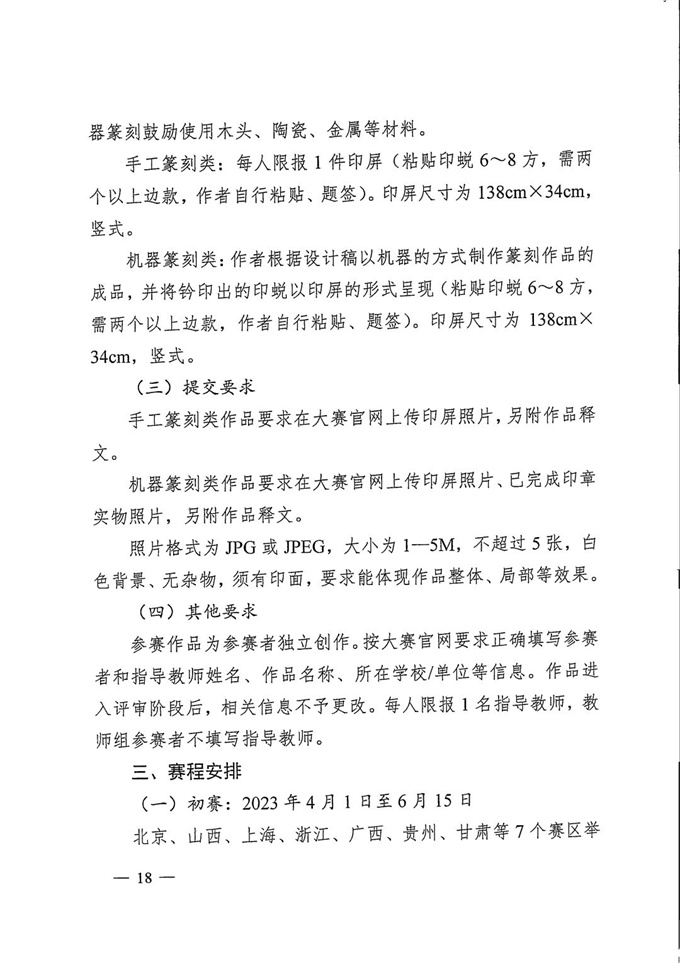 (四)“印记中国”师生篆刻大赛(以下简称篆刻大赛)