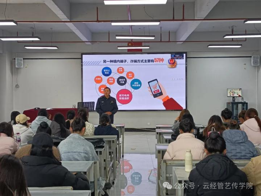接着,由于近期网络诈骗事件高发,为了防止同学们上当受骗,李丰全从校园诈骗的常用手段及如何预防诈骗两个方面来讲述,希望能够以此来提高同学们的警惕性,避免受骗。正值秋冬,天干物燥,他对即将到来的11.9全国消防安全日进行了简单介绍,并提醒同学们增强消防安全意识。