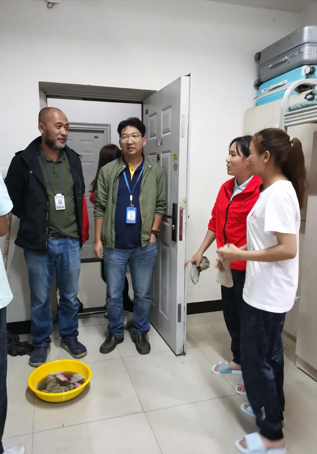 两位领导带领老师、学生干部们来到学院学生比较集中的12栋女生宿舍、14栋男生宿舍开始对新生进行走访,向各位新生表示亲切问候,对他们的到来表示热烈欢迎。