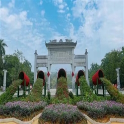 - 2023年4月20日,22专升本网络新媒体班采风队伍来到了北山民族广场。北山民族广场在广场入口处的两侧分别立有描写河口历史的浮雕墙,六根浮雕圆柱沿纵向分列两侧。广场入口处立有一个牌坊,上书“口岸明珠”四个篆体字,牌坊通常用以表彰弘扬高尚美德与丰功伟绩,是一种中华民族传统文化建筑形式;在广场正中的地面上,有红、蓝两色砖石拼成的八角花图案,八角花是河口瑶族民族图腾符号,蕴意着吉祥好运。多种元素的组合充分展现了北山民族广场浓郁的文化氛围,同时也表达出生活在云南这片土地上的25个民族和睦团结的美好愿望。