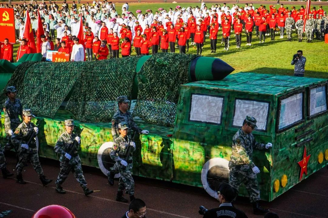 一个个方队以奇特的着装、整齐划一的步伐,展现着各自的精神风貌,具有专业特征的同时,又搞怪活泼。